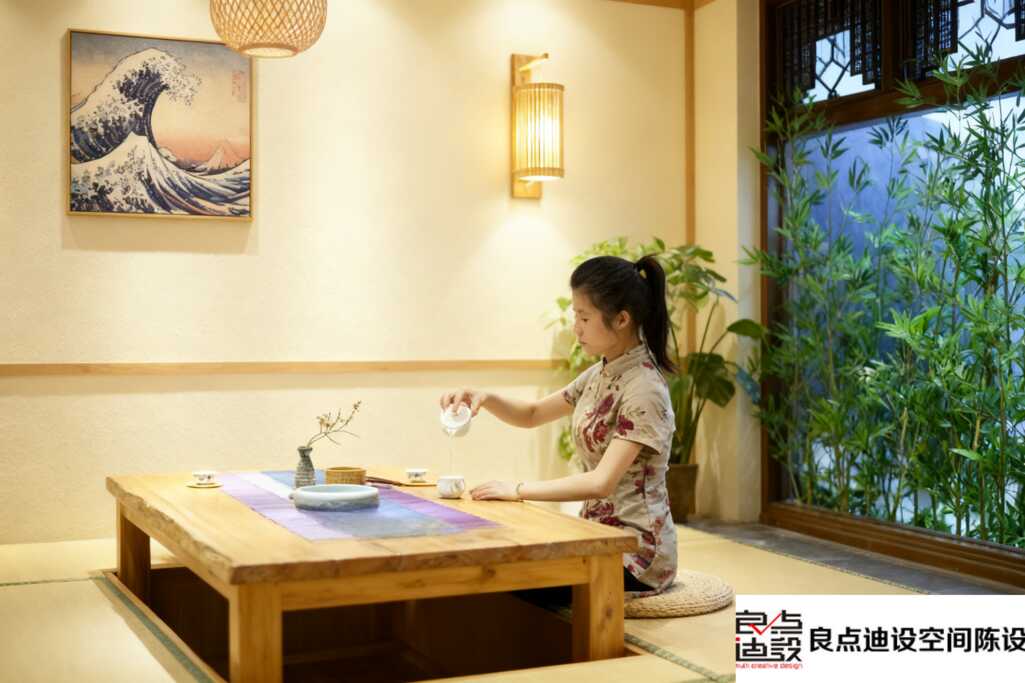 靠窗做了一排卡座區(qū),閨蜜聊天私密性夠夠的~中間散臺(tái)區(qū)用綠植做軟隔斷,商務(wù)洽談也不尷尬。***驚喜的是角落里的榻榻米茶室,竹簾+草席的設(shè)計(jì)禪意十足,***是拍照C位!