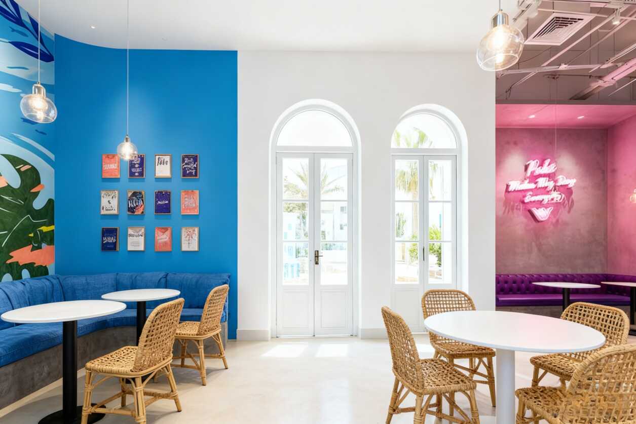 寶子們!今天要安利這家讓我一進門就驚叫的Poké-doke餐廳!整面墻直接把海底世界搬來了——藍色海浪里游著五彩魚兒,"Poké-doke"的立體字母像是從海里浮出來的,搭配綠植點綴,度假感瞬間拉滿!