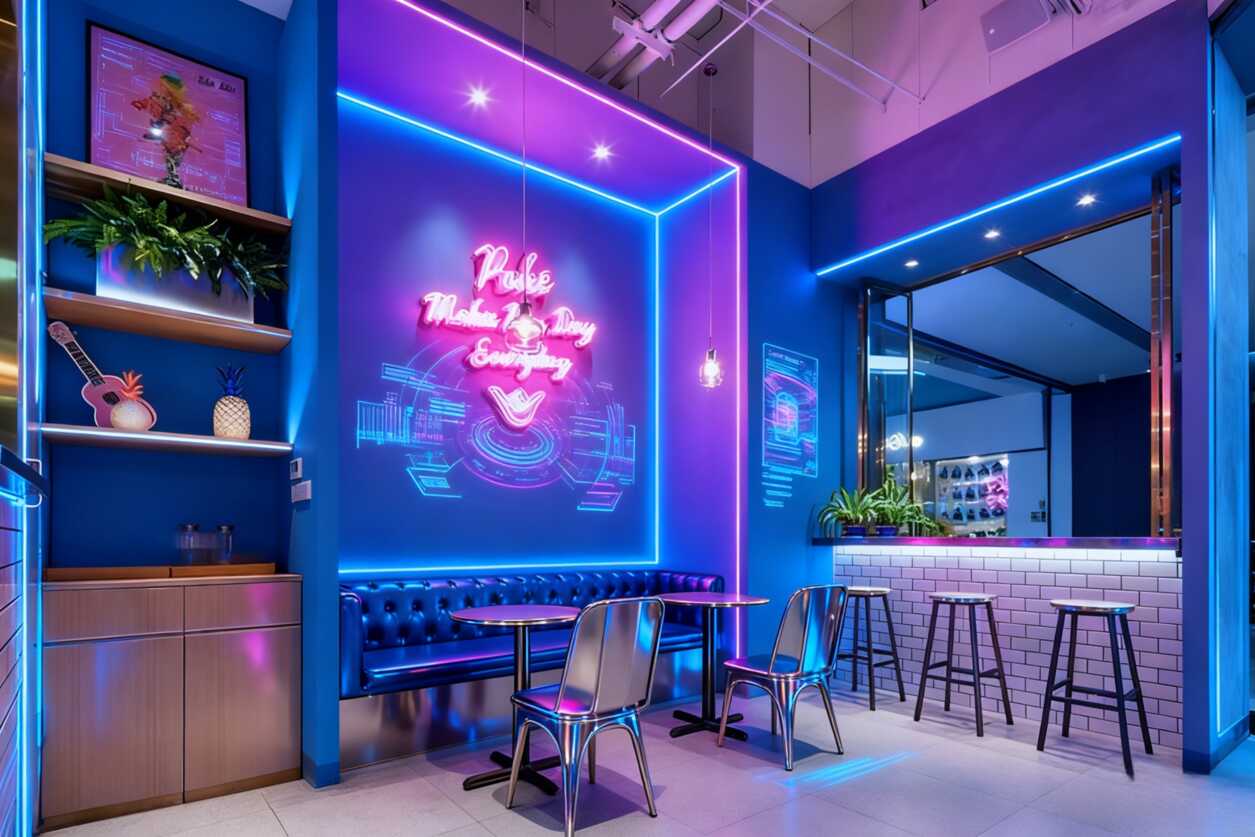 賽博朋克混搭文藝范!這家餐廳的霓虹燈墻絕了,隨手一拍就是未來感大片