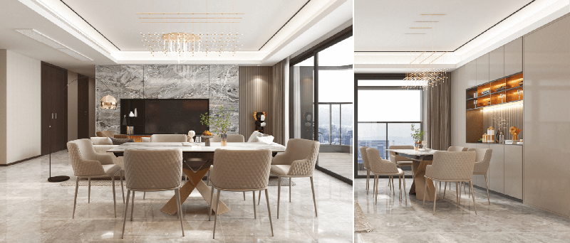 餐廳要以簡潔為主,無需過多的裝飾,簡單的燈具就是***好的裝飾品,餐邊柜的用處除了儲物功能與裝飾功能之外,還具備展示物品的作用,業主可以把收藏的酒、餐盤杯子或工藝作品放在餐邊柜的櫥窗中展示出來,烘托餐廳的氛圍,既實用有充滿了格調。