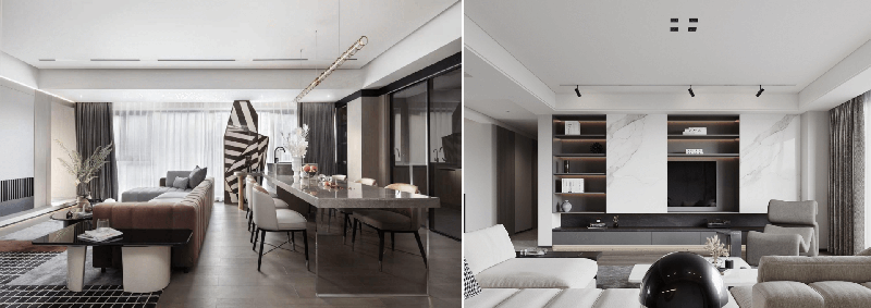 深色木材和灰色系搭配,氛圍沉穩的同時也不乏溫暖感,嵌入式的電視機設計,將電視機嵌入到電視背景墻內,電視背景墻做收納柜,線路可以隱藏在電視后面,大氣又整潔,很多家中的雜物都可以放在儲藏柜里,儲物功能直接翻倍,客廳整體的裝修風格,給人很溫馨、很舒適,有種高雅大氣的時尚感,色調柔和低調有內涵,在家具與色彩搭配上盡顯簡約大方,浪漫優雅,有韻味。