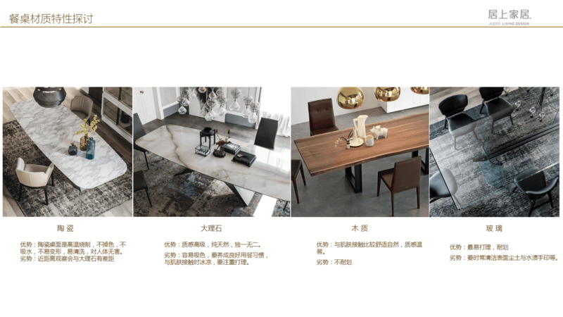 餐廳 延續現代簡約風格,餐桌可以選擇不同的材質來裝飾餐廳,不同的材質其實就會體現出不一樣的氛圍,比如大理石更偏剛硬,木質更偏柔軟,玻璃更偏通透,包括像巖板更偏硬朗,可以根據性格的喜好想要的空間感覺。