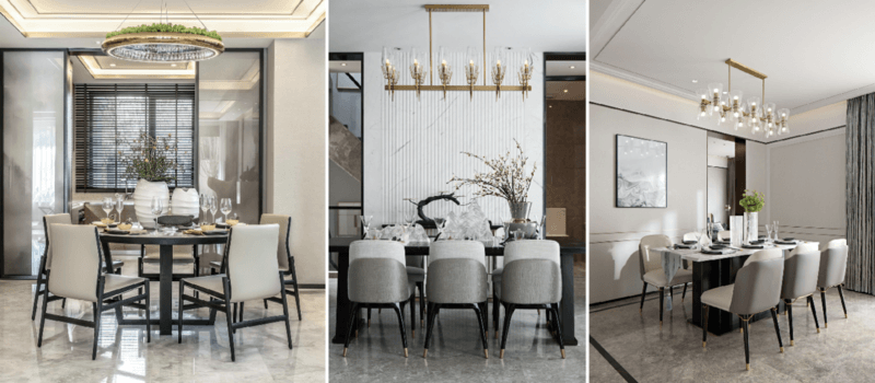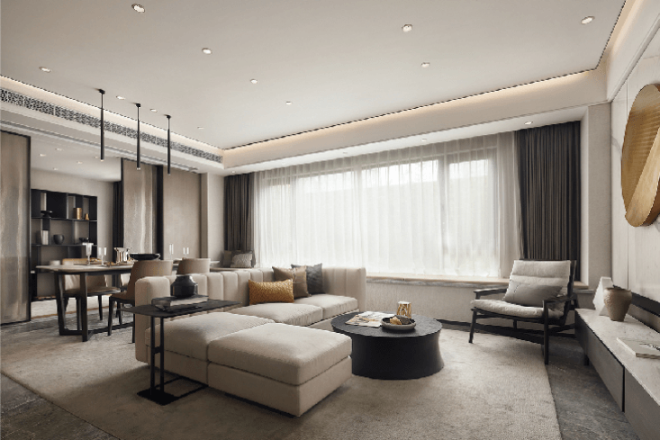 餐客廚一體,讓空間效率變得更高,功能能夠重疊使用,如餐桌貼近廚房,餐桌可以作為備餐區(qū),餐廳與客廳相融,餐椅也是客廳的“沙發(fā)”。