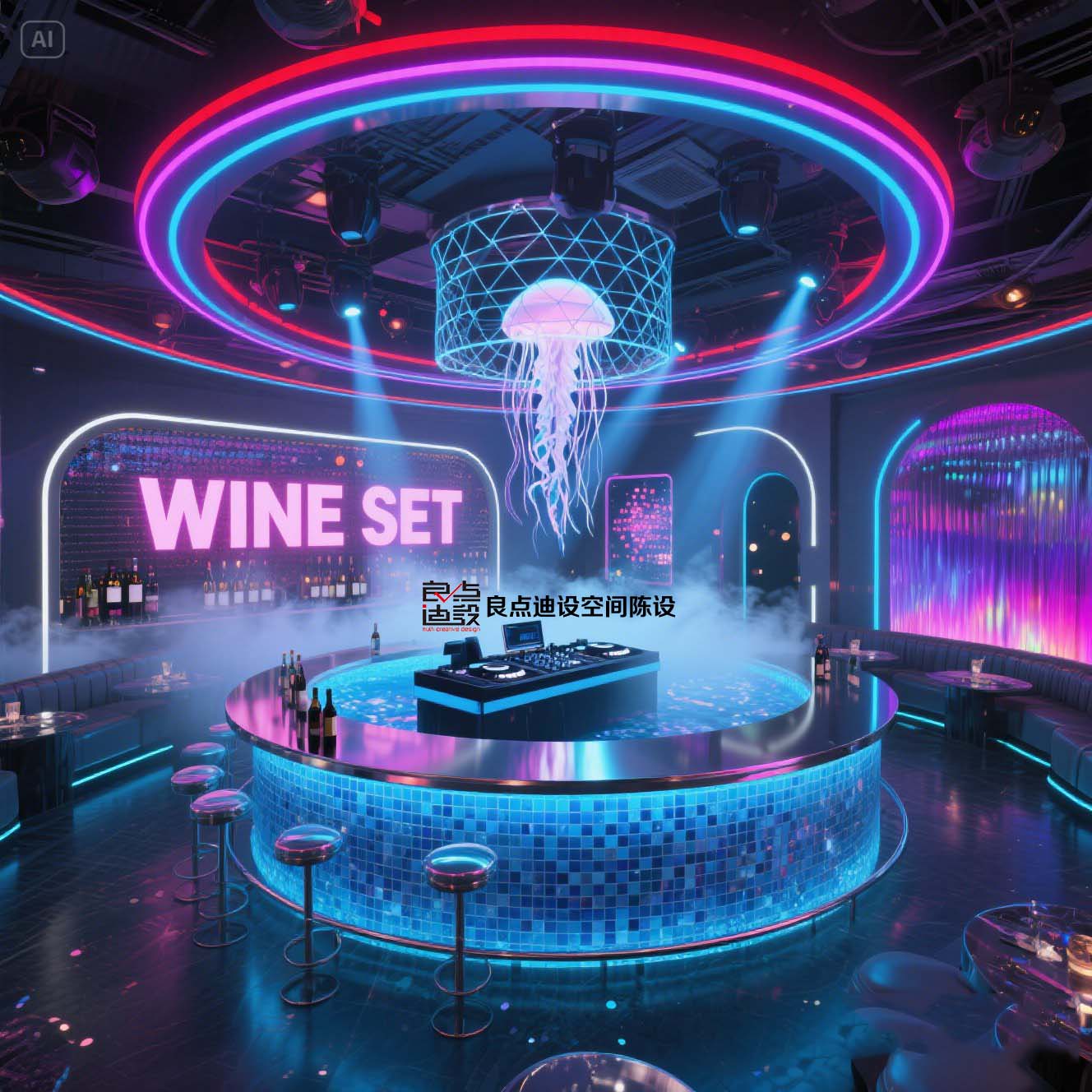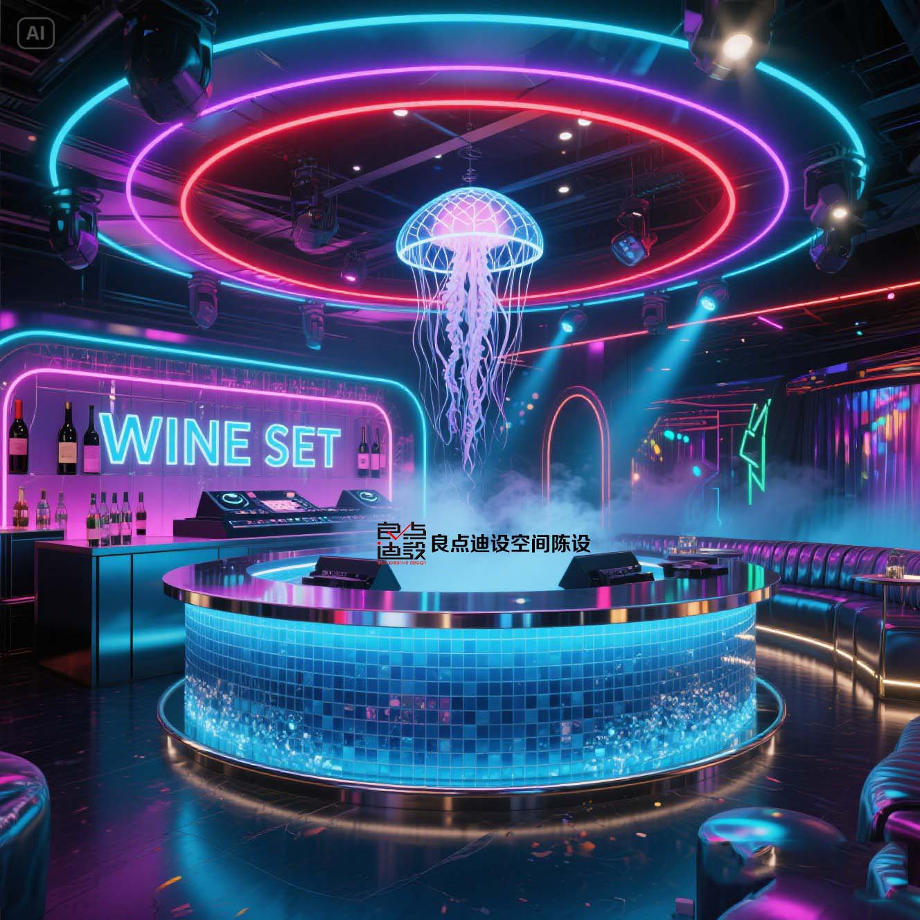 夜店酒吧裝修軟裝設計!藍色海洋遇上賽博霓虹