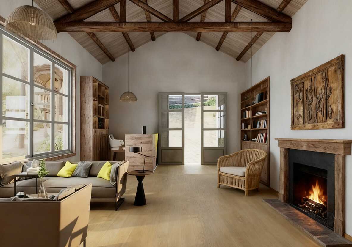 鄉村侘寂風民宿軟裝設計絕了!壁爐 + 原木 + 藤編,住進這里就像闖進歐洲田園電影