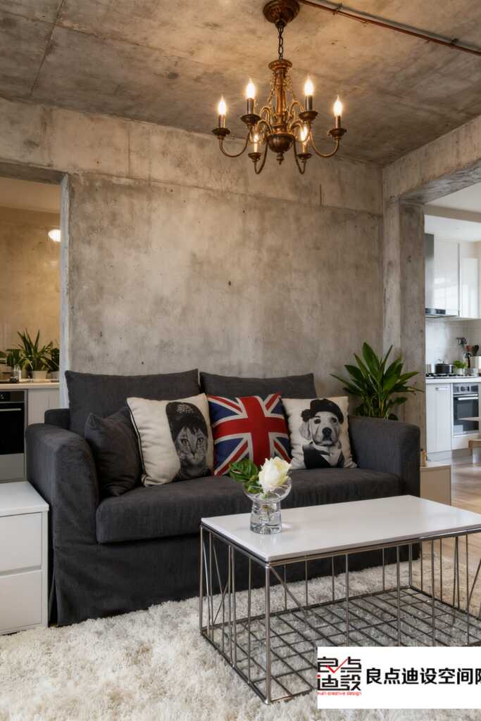 深灰水泥墻+復古燈,這個工業風一居室軟裝設計真的絕了!